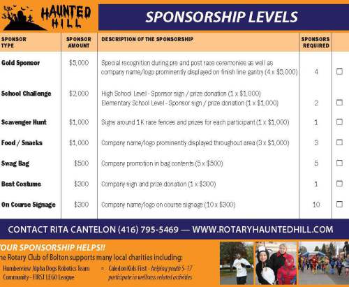 All Proceeds go to local youth programs such as Caledon Kids First, Humberview Alphadogs and Alphapups, Student Awards programs, local sports teams